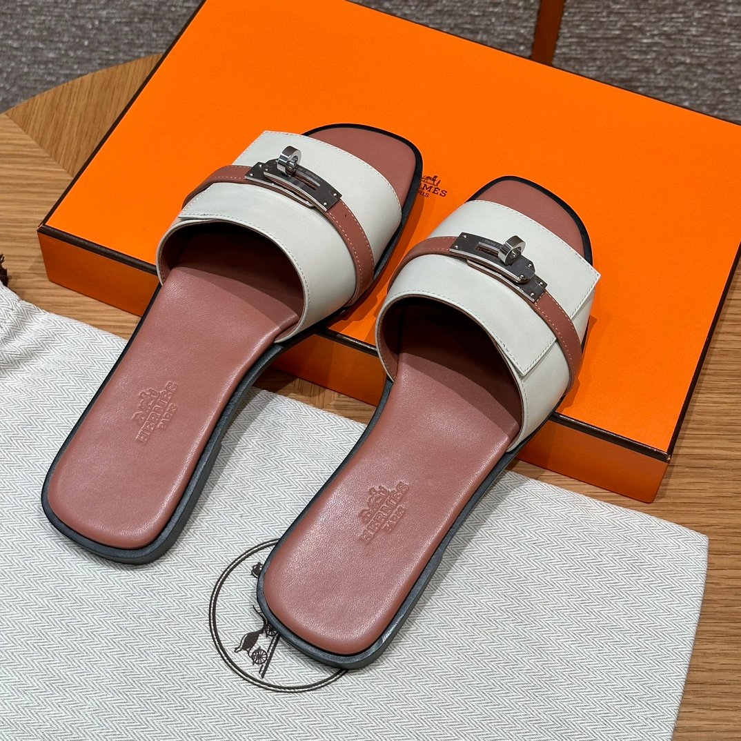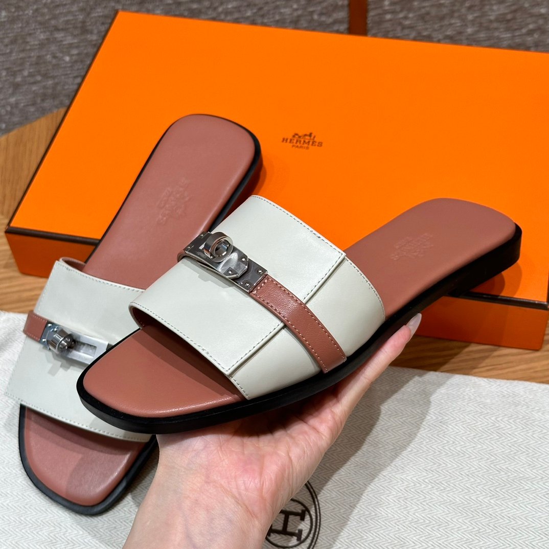 Sandal in calfskin with iconic palladium-plated Kelly buckle.