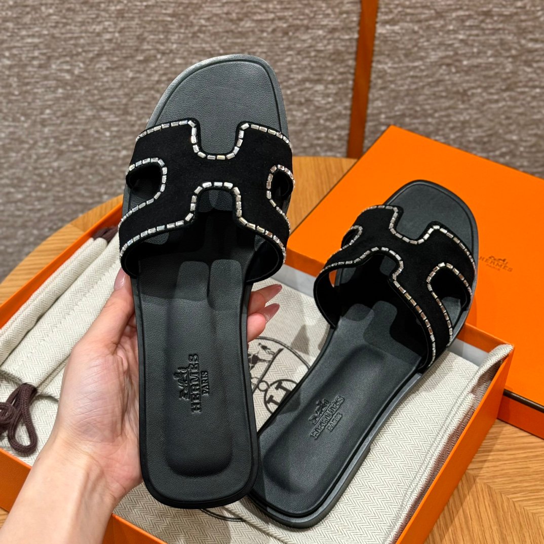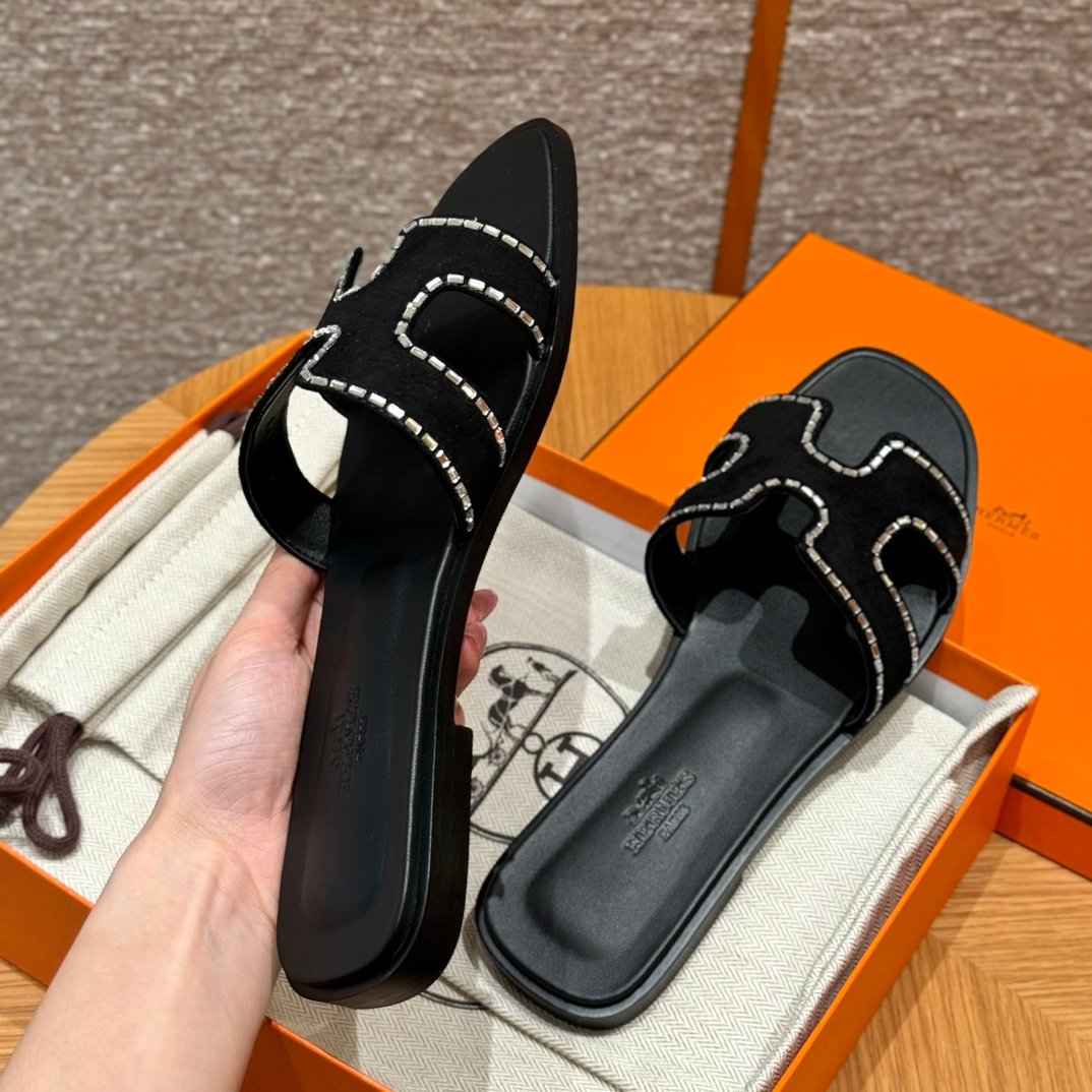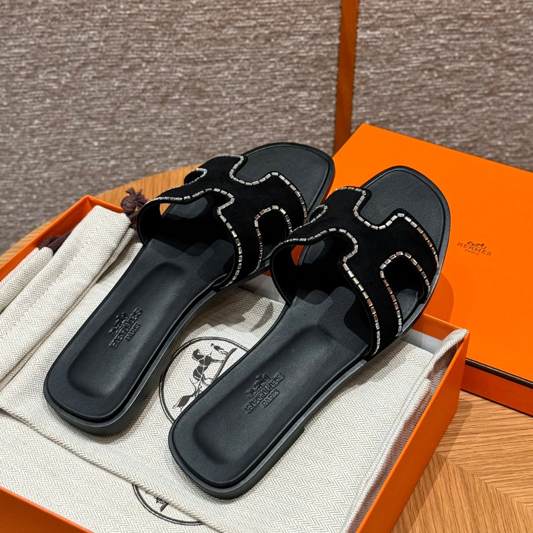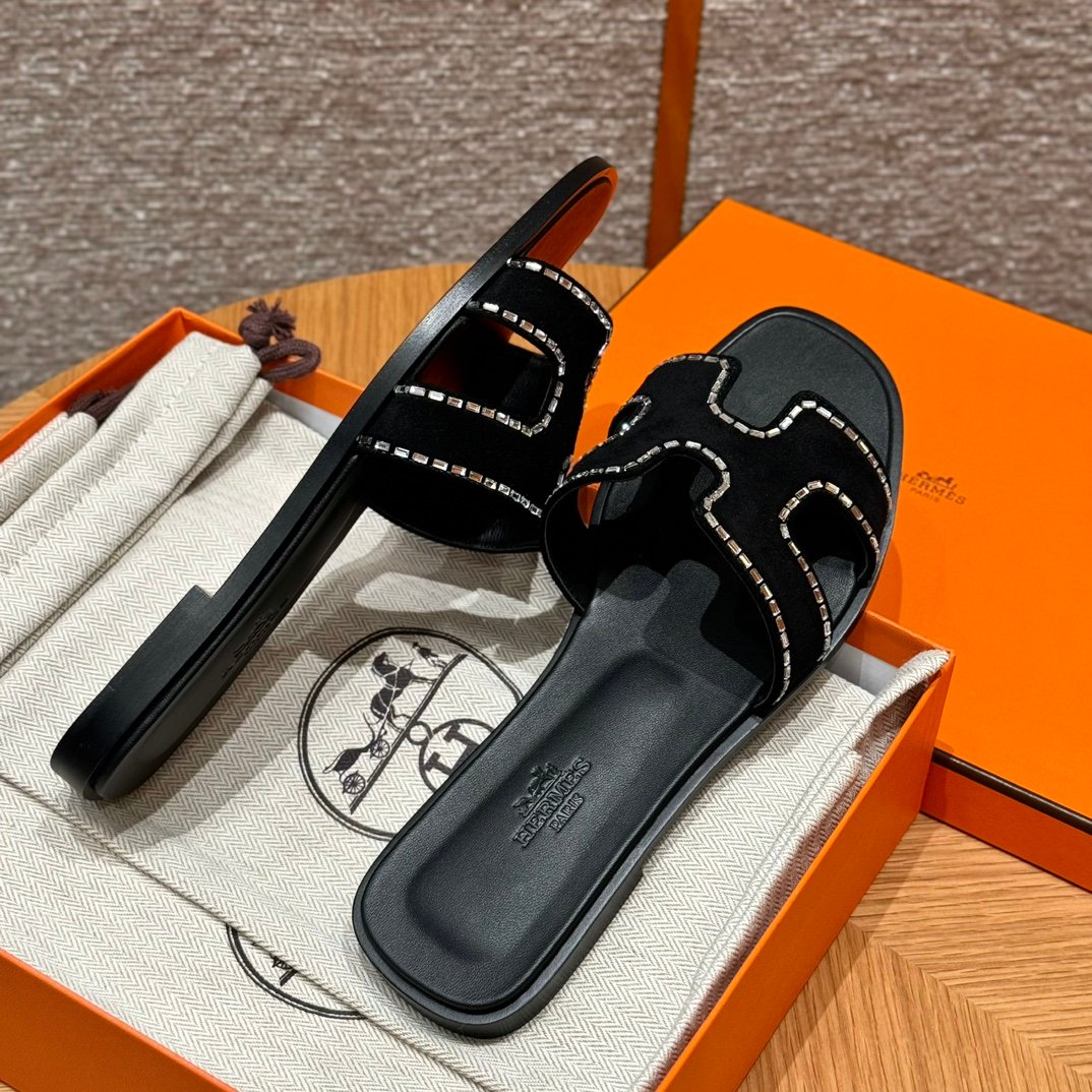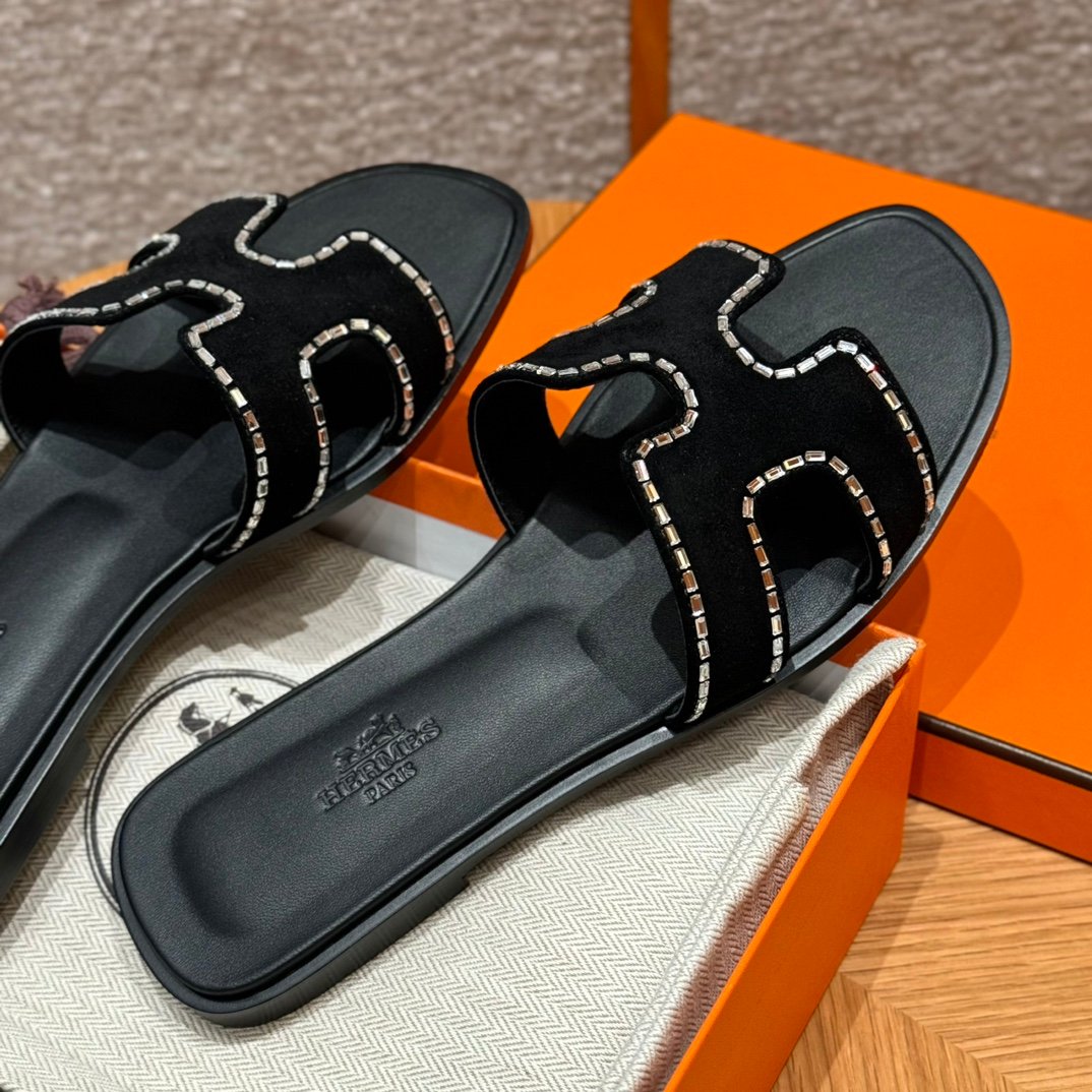 Sandal in calfskin with iconic "H" cut-out and rhinestone details. An iconic Hermès style, this silhouette is an essential piece in every wardrobe